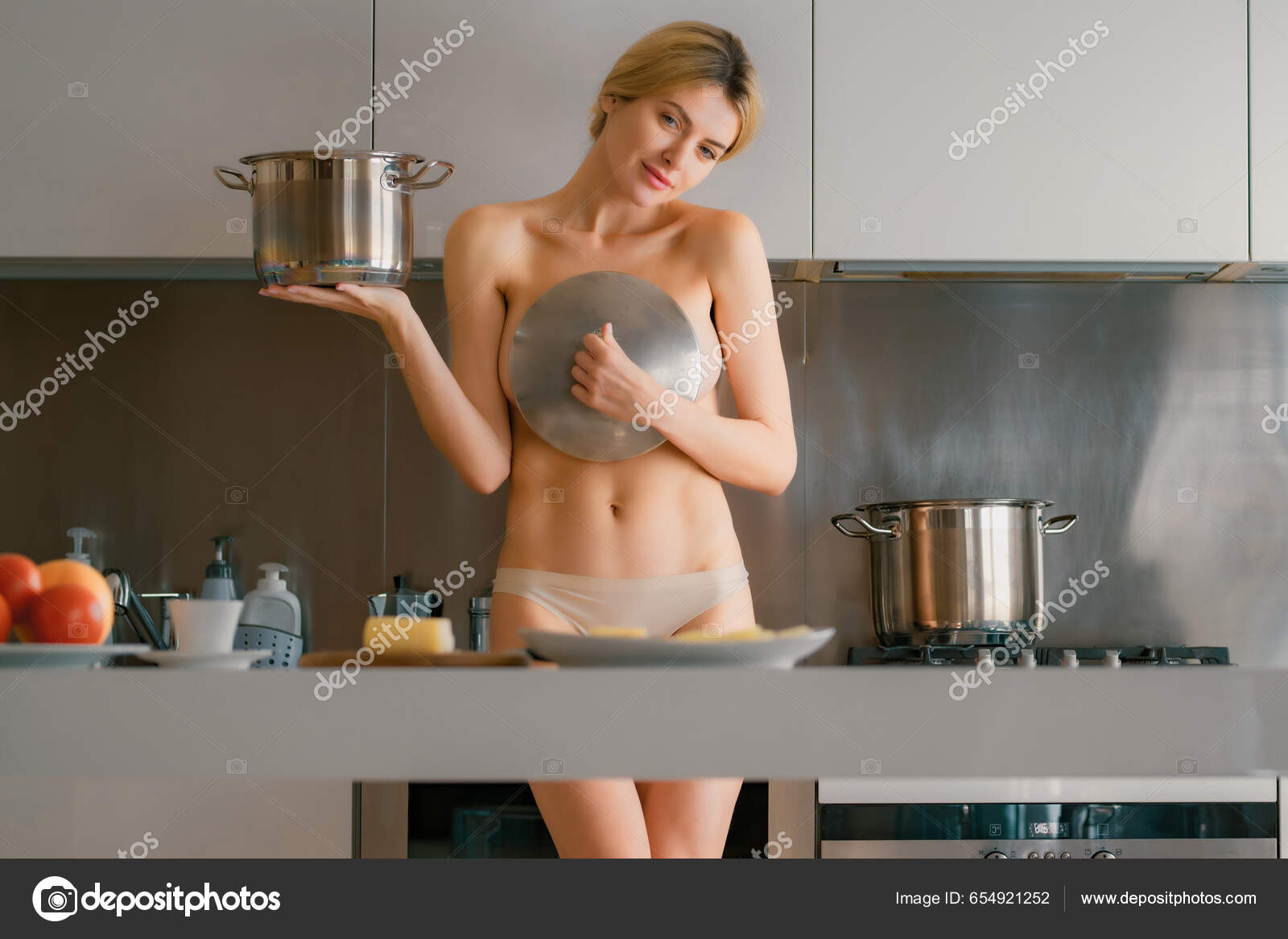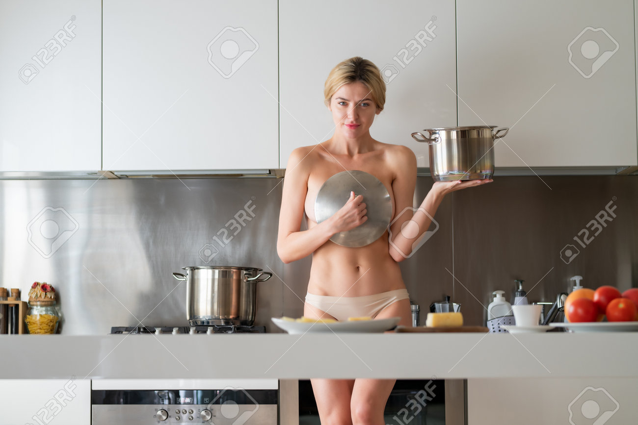 Woman cooking naked